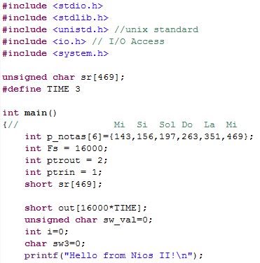 Como vamos a implementar el algoritmo en el Nios II, usando a la FPGA como creador del impulso de la guitarra y como la guitarra misma, el código en Matlab se puede reutilizar para programar el procesador, así, el siguiente paso es pasar el código escrito en Matlab a código en C, usando el IDE Eclipse.